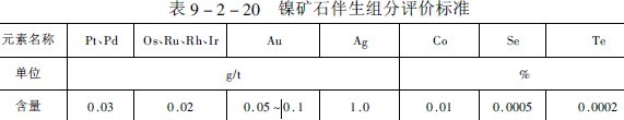 我國目前鎳礦床地質評價標準列于表9-2-18。