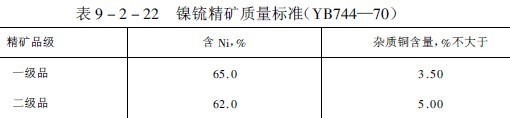 鎳銃精礦質量標準列于表9-2-22。